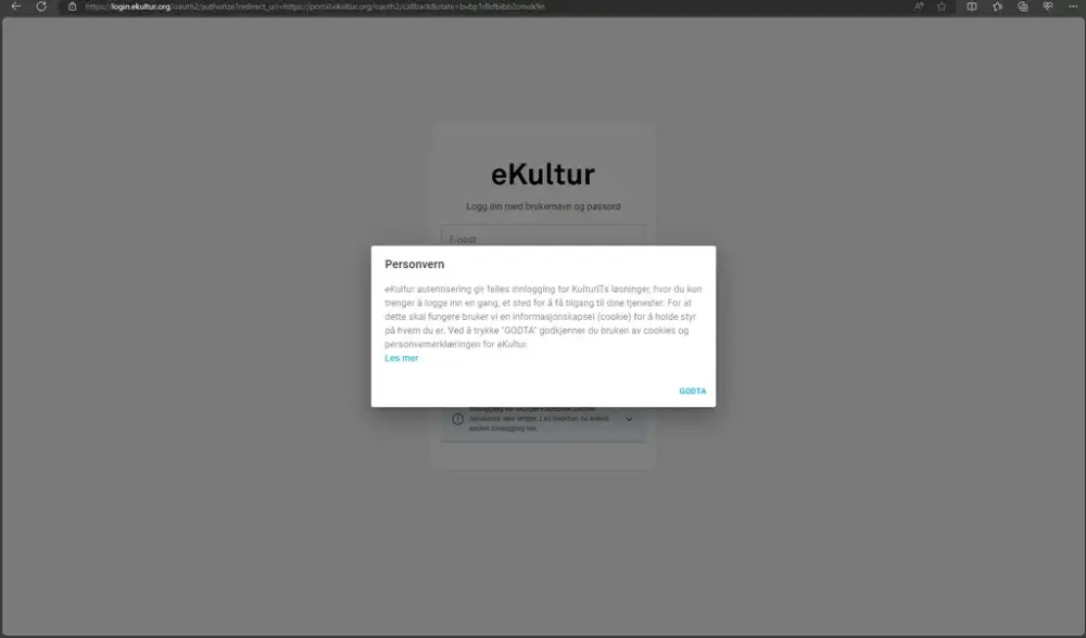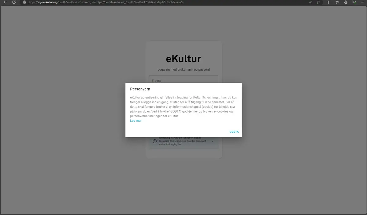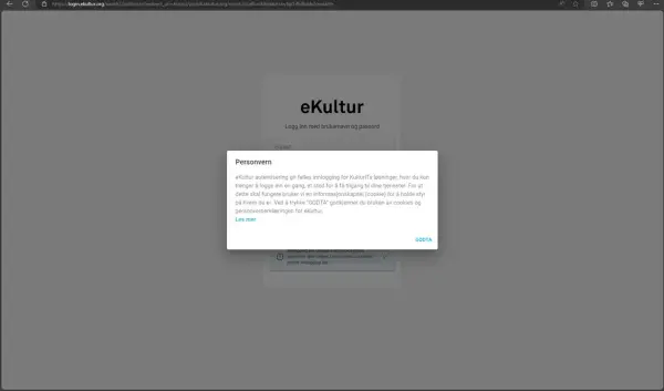 Her får du informasjon om personvern i eKultur. Godta for å gå videre.