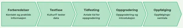 - Oppfølging: Etter oppgraderingen arbeider museet som vanlig, og museets Primus-kontaktperson kontaktes for en oppfølgingssamtale.