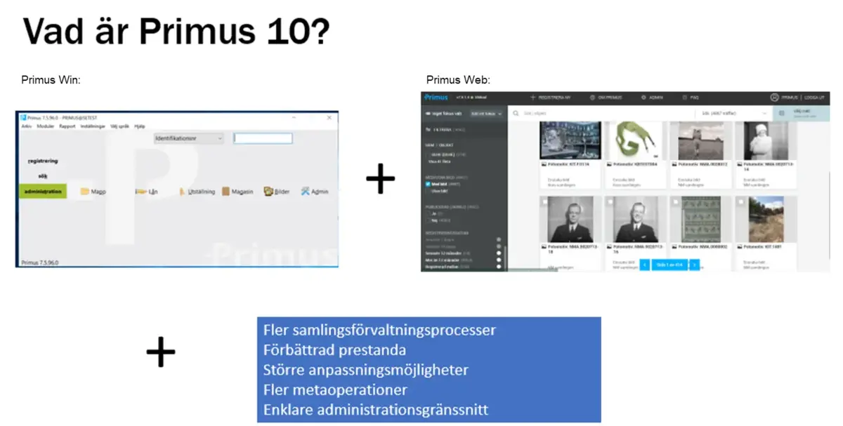 Kort sammanfattat kombinerar Primus 10 kvaliteterna och funktionerna från Win och Web och har dessutom flera nya och viktiga verktyg.