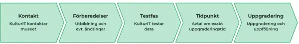 Uppgraderingsprocessen börjar med att KulturIT kontaktar museet. Detta gör vi i god tid innan själva uppgraderingen av databasen.