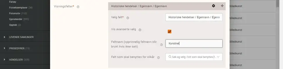 6. Egendefinerte visningsfelter og mulighet for å legge til vilkår for feltvisning