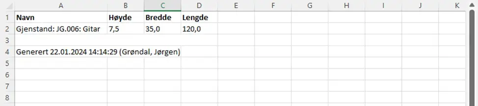 Ved å eksportere til Excel blir resultatet slik: