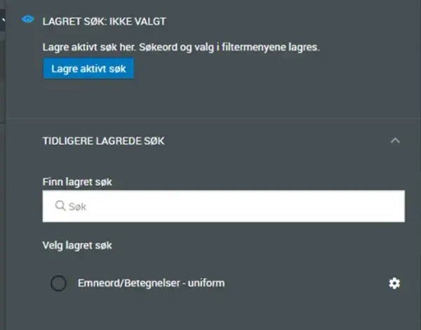 Som en del av et forbedret brukergrensesnitt, har vi valgt å bytte ut begrepet Fokus med Lagret søk, da dette bedre reflekterer formålet som funksjonen tjener.