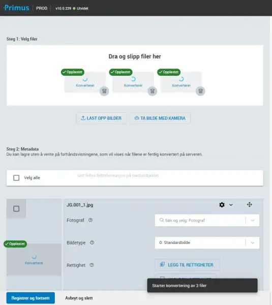 I tidligere versjoner har det vært vanskelig å se status for bildefiler, da Primus bruker tid på å hente inn en forhåndsvisning av bildefilene som lastes opp.