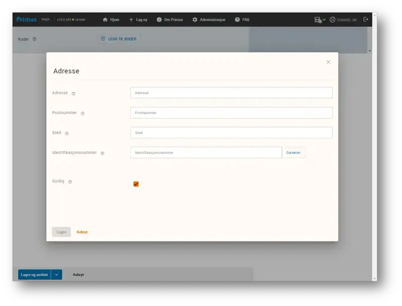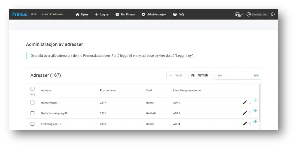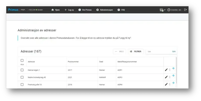 Det er implementert støtte for å registrere adresser i Primus 10.