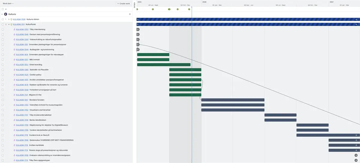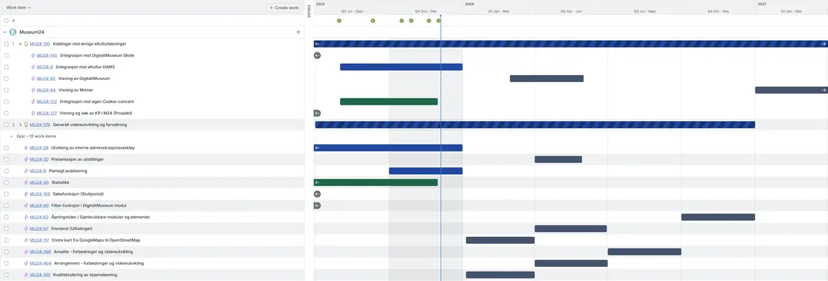 Grønn tidslinje: indikerer at arbeidet er ferdigstilt